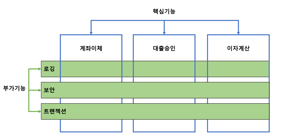 AOP란?AOP(Aspect Oriented Programming), 관점지향 프로그래밍은 어떠한 로직을 기준으로 핵심 관심사와 부가적인 관심사를 나누어서 해당 관점을 기준으로 모듈화하는 프로그래밍 패러다임입니다.이렇게 말하면 처음에는 무슨말인지 싶었다. 그래서 자세히 예를 들어 정리해보겠습니다.아래와 같이 서비스가 존재합니다. 위와 같이 계좌이체, 대출승인, 이자계산이라는 핵심 기능이 존재하고 해당 핵심 기능마다 공통적으로 작동해야하는 부가기능이 존재합니다. 로깅, 보안, 트랜잭션이 그러한 기능들입니다. 그렇다면 이러한 부가기능을 어떻게 판별할것이냐? 그러기 위해서 다음과 같은 개념을 알고 있어야합니다.JoinPoint조인포인트는 타킷의 코드가 실행할때 나타날수 있는 여러시점으로써 포인트컷으로 지정될수..