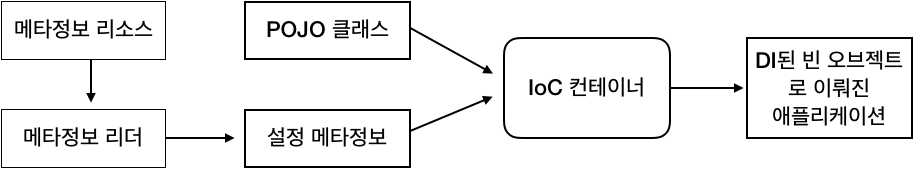 IOC 컨테이너를 동작시키기 위해서는 크게 2가지가 필요한데 하나는 POJO 클래스이며 다른 하나는 설정 메타 정보입니다.